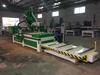 真空吸附臺面,可固定較小尺寸板材。省料:電腦自動優(yōu)化排版,最大限度的提高板式家具板材利用率。省工:以前的推臺鋸等下料設(shè)備,需兩個人操作,工人不停的轉(zhuǎn)動板材,調(diào)靠尺,工作強度大,板式家具開料機一人可操作多臺機器,工作強度小,從而節(jié)省人工成本。