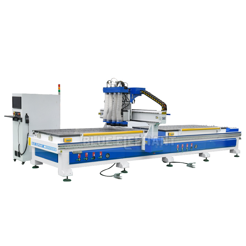 一機(jī)多用:切割下料、開槽排孔、雕刻機(jī)造型無所不能。板材自動定位,省心省力。可以對板材進(jìn)行兩面打孔及開槽。三頭自動智能換刀,效率高、精度極準(zhǔn)。速度非??欤?kw大功率風(fēng)冷主軸電機(jī),18mm刨花板開料速度可達(dá)到20米/分鐘。兼容性好,兼容多種板式家具軟件、門板自動優(yōu)化排版軟件。